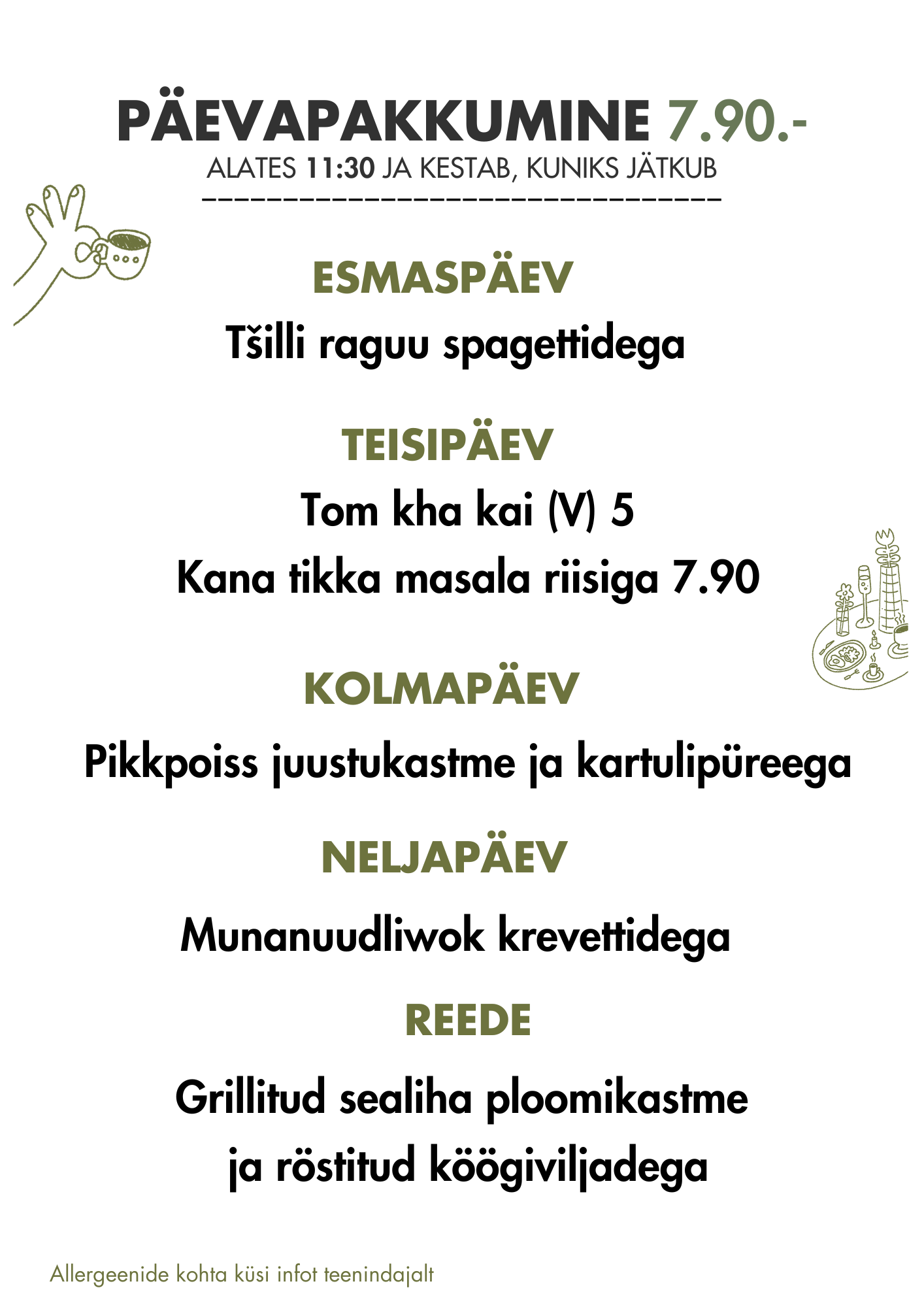 Usume, et meie laialdasest menüüst ja maitsvast kohvivalikust leiab iga üks endale midagi.